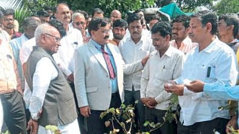 वसंतराव नाईक मराठवाडा कृषी विद्यापीठातर्फे कृषी विभागाच्या सहकार्याने आयोजित ‘माझा एक दिवस माझ्या बळीराजासाठी’ उपक्रमांतर्गत मंगरूळ (ता. मानवत) येथे शेतात जाऊन डॉ. मणी यांनी मंगळवारी (ता. ८) शेतकऱ्यांशी संवाद साधला.