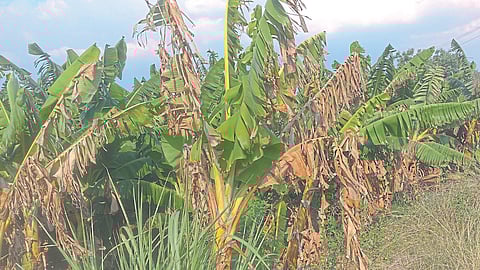 सुमारे नऊ हजार हेक्टरवरील दोन ते तीन महिने कालावधीच्या केळी बागांची पाने पोळली आहेत. तर १५ हजार हेक्टरवरील निसवलेल्या बागांमध्ये घड सटकणे, झाडे मोडून पडणे अशी स्थिती आहे.