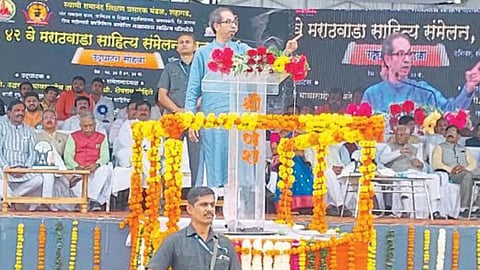 जालना जिल्ह्यातील घनसावंगी येथे आयोजित ४२ व्या मराठवाडा साहित्य संमेलनाचे उद्घाटन शनिवारी (ता.११) झाले. या प्रसंगी ठाकरे बोलत होते. या वेळी संमेलाध्यक्ष शेषराव मोहिते, मावळते संमेलनाध्यक्ष बाबू बिरादार, कौतुकीराव ठाले-पाटील, विरोधी पक्षनेते अंबादास दानवे, माजी मंत्री अनिल परब, अनिल देसाई, मिलिंद नार्वेकर, विनोद घोसाळकर, चंद्रकांत खैरे, संजय जाधव, राजेश टोपे, कैलास गोरंट्याल, विक्रम काळे आदी उपस्थित होते.