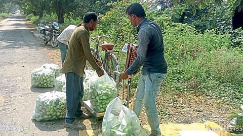 पथ्रोट, जि. अमरावती : सुरुवातीला शेतातून निघालेली हिरवी वांगी (Brinjal) चाळीस किलोच्या कट्ट्यामध्ये पॅकिंग करून बाजारपेठेत पाठविल्या जायची. परंतु आता बाजारपेठेतील मागणीनुसार कसरत करीत शेतकरी हिरव्या वांग्याची (Green Brinjal) जाग्यावरच काटापट्टी पॅकिंग करून देत आहेत.