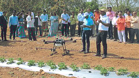 तसेच शेतकऱ्यांना असलेल्या शंकांचे योग्य पद्धतीने निरसन केले. या वेळी तांत्रिक अधिकारी निलकंठ मोरे, जी. बी. बनगे यांनी लोकमंगल महाविद्यालयाच्या स्ट्रॉबेरी या फळ पिकावर ड्रोनद्वारे फवारणी करून प्रात्यक्षिक करून दाखविले.