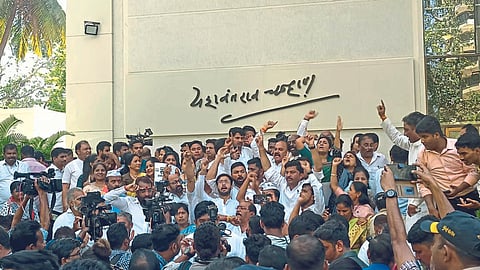 पवार यांनी पक्षाध्यक्षपदाचा राजीनामा दिल्यानंतर मंत्रालयासमोरील यशवंतराव चव्हाण प्रतिष्ठानमध्ये कार्यकर्त्यांनी जोरदार घोषणाबाजी करत राजीनामा मागे घेण्याची मागणी केली. पवार यशवंतराव चव्हाण प्रतिष्ठान येथे आल्यानंतर कार्यकर्त्यांनी घोषणाबाजीने परिसर दणाणून सोडला. त्यानंतर पवार यांनी बाहेर येऊन कार्यकर्त्यांशी संवाद साधला.