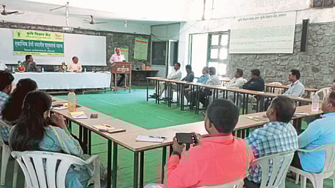 कृषी विज्ञान केंद्र खरपुडी, जालना आयोजित ‘एकात्मिक शेती पद्धतीत पशुधनाचे महत्त्व’ या विषयावर एकदिवसीय प्रशिक्षणाचे आयोजन मंगळवारी (ता. २०) विस्तार कर्मचाऱ्यांसाठी करण्यात आले होते. या कार्यक्रमाच्या उद्घाटन प्रसंगी कृषी विज्ञान केंद्राचे वरिष्ठ शास्त्रज्ञ व प्रमुख एस. व्ही. सोनुने व निवृत्त कृषी अधिकारी नंदकिशोर पुंड यांची प्रमुख उपस्थिती होती. या प्रशिक्षणाचे जिल्ह्यातील पशू संवर्धन विभागातील पशुधन विकास अधिकारी व पशुधन पर्यवेक्षक या विस्तार कर्मचाऱ्यांकरिता कृषी विज्ञान केंद्र, खरपुडी येथे आयोजन करण्यात आले होते.