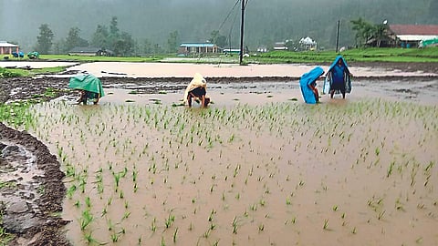 प्रामुख्याने गंगापूर, दारणा व गिरणा धरण समूहाच्या पाणलोट समूहातील झालेल्या मुसळधार पावसामुळे पश्चिम-उत्तर भागातील अनेक नद्यांना पूर आल्याने काठच्या शिवाराची दाणादाण उडाली आहे. गेल्या सप्ताहापासून त्रंबकेश्वर, इगतपुरी, पेठ व सुरगाणा तालुक्यातील भात, नागली, वरई लागवडी तर कळवण, सटाणा व देवळा या तालुक्यातील शिल्लक राहिलेल्या पेरणीही वापसा नसल्याने खोळंबल्या आहेत. सुरगाणा तालुक्यात पाऊस कमी झाला आहे. इगतपुरी, पेठ, दिंडोरी, त्र्यंबकेश्वर तालुक्यांत पाऊस सुरू आहे.