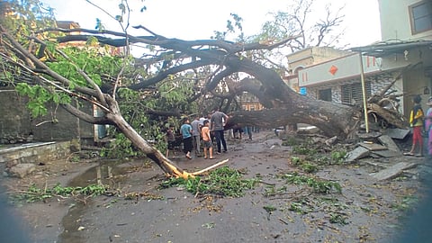 वादळी वाऱ्यामुळे अनेक घरांची पडझड झाली आहे. नेवासे, राहुरी, संगमनेर, जामखेड, पारनेर, श्रीरामपूर, श्रीगोंदे, राहाता या तालुक्यांतील चारशेपेक्षा अधिक गावांना फटका बसला आहे.