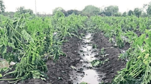 येथील जवळपास ३० ते ३५ शेतकऱ्यांनी ६० एकरावर नोव्हेंबर महिन्यात पपईची लागवड केली होती.