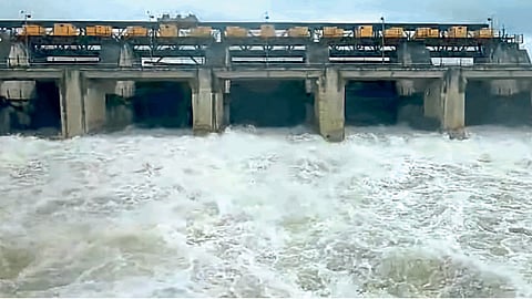 नांदूरमधमेश्वर बंधाऱ्यातून मंगळवारी (ता. २५) सकाळी ३,००० दुपारी ५,५७६ तर सायंकाळी ७,१९० क्युसेक विसर्ग सोडण्यात आला होता. तो आता कमी करून बुधवारी (ता. २६) ५,५७६ इतका करण्यात आला आहे. यापूर्वी १२५० कयुसेक विसर्ग सुरू होता.