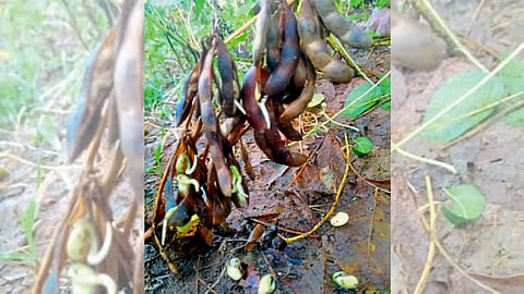 गेल्या आठवड्यापासून सोयाबीन काढणीचा हंगाम जोमात आला. त्यातच ऑक्टोबर हीटचा परिणाम जाणवू लागला. तापमानात चांगली वाढ झाली होती. जिल्ह्यात काही दिवसांपासून पावसाने उघडीप दिली होती. त्यामुळे शेती कामांनी वेग धरला. दसऱ्यापूर्वी अनेकांचे सोयाबीन काढून झाले. अर्ध्यापेक्षा जास्त शेतकऱ्यांची सोयाबीनची कापणी झाली. परंतु बुधवारी (ता. ५) रात्रीपासून अचानक परतीच्या पावसाला सुरुवात झाली.
