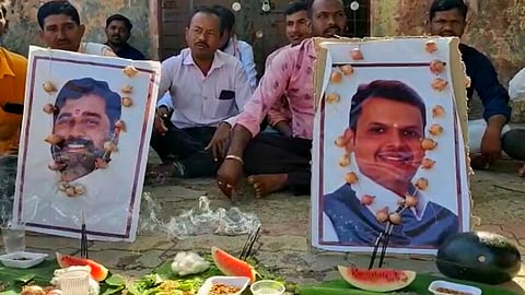 Buldana News ऐन अक्षय्य तृतीया (Akshaya Tritiya) सणाच्या दिवशीच मुख्यमंत्री एकनाथ शिंदे (Eknath Shinde) आणि उपमुख्यमंत्री देवेंद्र फडणवीस (Devendra Fadanavis) यांच्या फोटोला हार घालून श्राध्द घालत आंदोलन करण्यात आले आहे.
