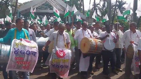 Kolhapur Sugar Factories : गेल्या वर्षी तुटलेल्या उसाचा दुसरा हप्ता प्रतिटन ४०० रूपये तातडीने द्या, अन्यथा गाठ स्वाभिमानीशी आहे, असे सांगून स्वाभिमानी शेतकरी संघटनेच्यावतीने आज (ता.०२) कोल्हापूर जिल्ह्यातील बहुतांश साखर कारखान्यांवर ढोल बजावो आंदोलन करून जागर करण्यात आला. यावेळी स्वाभिमानी शेतकरी संघटनेचे सावकर मादनाईक यांच्या नेतृत्वाखाली ढोल बजाव आंदोलन करण्यात आले.