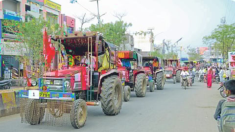 परळी वैजनाथ : शेतकऱ्यांच्या मागण्यासाठी किसान सभेच्या (Kisan Sabha) वतीने परळी तहसिलवर बुधवारी (ता.२५) ट्रॅक्टर मोर्चा काढण्यात आला. या मोर्चामध्ये तालुक्यातील बहुतांश गावांतून ट्रॅक्टरसह शेतकरी (Tractor Morcha) मोठ्या संख्येने सहभागी झाले.