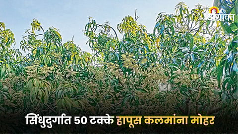 Sindhudurg News : सिंधुदुर्ग जिल्ह्यातील किनारपट्टी तालुक्यातील ५० टक्क्यांहून अधिक हापूस कलमांना मोहर आला असून, उर्वरित कलमांना मोहर येण्यासाठी सध्या अनुकूल वातावरण आहे. त्यामुळे पुढील दहा ते बारा दिवसांत ८० टक्के कलमांना मोहर येण्याची शक्यता आहे.