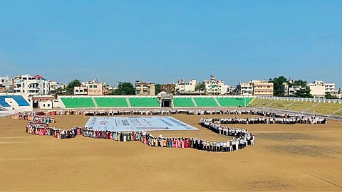 लालबहादूर शास्त्री क्रीडांगण येथे झालेल्या या कार्यक्रमात मानवी साखळीतून अकोला जिल्ह्याचा नकाशा साकारण्यात आला.