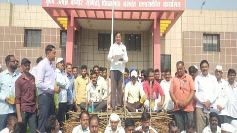 Niphad News : पिंपळगाव बाजार समितीत कांदा लिलाव सुरू करताना प्रचलीत पद्धतीने कामात सहभागी करून न घेतल्याने मापारी-माथाडी कामगारांमध्ये उद्रेक झाला. कामगारांनी सोमवारी (ता. २९) पिंपळगाव बसवंत बाजार समितीच्या मुख्य कार्यालयासमोर प्रांगणात लाकडाचे सरण रचून आंदोलन छेडले.