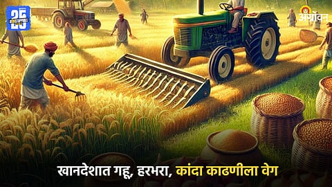 Jalgaon News: खानदेशात हरभरा, गहू कापणी व काढणीस वेग आला आहे. रोज ढगाळ वातावरण राहत असल्याने शेतकऱ्यांमध्ये पावसाची भीती आहे. यामुळे कापणी, मळणीचे काम गतीने सुरू आहे.