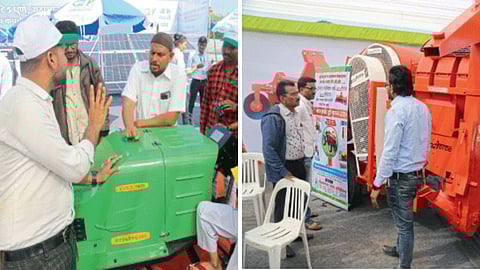 येथील कृषी प्रदर्शनात ‘शिवतारा ॲग्रो सर्व्हिसेस ॲण्ड स्पेअर पार्ट’ यांच्या वतीने रोटाव्हेटर आणि शेती अवजारांचे दालन सादर करण्यात आले आहे.
