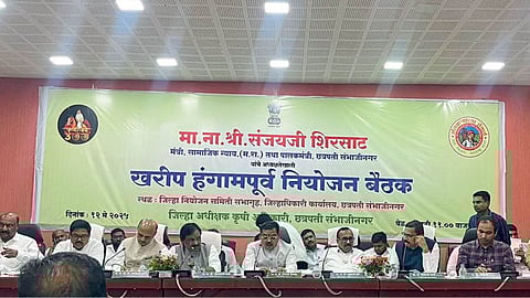 खरीप हंगामपूर्व नियोजन बैठक सोमवारी (ता. १२) जिल्हा नियोजन सभागृहात पार पडली. या बैठकीच्या अध्यक्षस्थानी सामाजिक न्याय मंत्री तथा पालकमंत्री संजय शिरसाट, इमाव कल्याण, दुग्ध विकास व अपारंपरिक ऊर्जा मंत्री अतुल सावे, अंबादास दानवे, राज्यसभा खासदार डॉ. भागवत कराड, खासदार संदिपान भुमरे, खासदार डॉ. कल्याण काळे, विधान परिषद सदस्य आमदार राजेश राठोड, आमदार संजय केणेकर, विधानसभा सदस्य आमदार रमेश बोरनारे, आमदार प्रशांत बंब, आमदार नारायण कुचे, आमदार अनुराधा चव्हाण, आमदार संजना जाधव, आमदार विलास भुमरे.