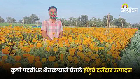 Parbhani News : यंदा अतिवृष्टी व मॉन्सून्नोत्तर पावसामुळे झेंडूचे नुकसान झाल्याने शेतकऱ्यांना फटका बसला. परंतु प्रतिकूल हवामान स्थितीत मोरेगाव (ता.सेलू) येथील कृषी पदवीधर तरुण शेतकरी प्रभाकर चव्हाळ यांनी काटेकोर व्यवस्थापन करून दोन एकरांत दर्जेदार झेंडूचे उत्पादन घेतले आहे. झेंडूमध्ये कोथिंबीर आणि फ्लॉवरचे आंतरपीक घेऊन बोनस उत्पन्न मिळाले. यामुळे झेंडू या मुख्य पिकाच्या उत्पन्नाची जोखीम कमी करणे शक्य झाले.