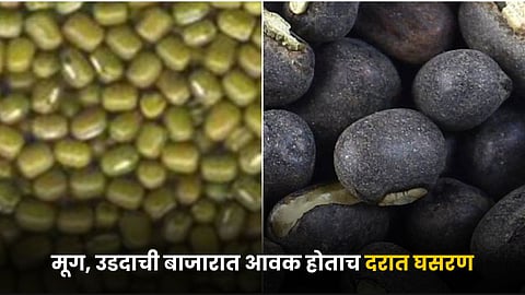 तीन महिन्यांपूर्वी १० हजारांपासून ११,५०० रुपये क्विंटलने विकला जाणाऱ्या मुगाला सध्या ६ हजार ते ८,३०० रुपये तर ७,००० ते १० हजारांपर्यंत प्रतिक्विंटलने विकल्या जाणाऱ्या उडदाला ६ हजार ते ७ हजार रुपयांपर्यंत प्रतिक्विंटर दर मिळत आहे.