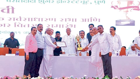 Dharashiv News : वसंतदादा शुगर इन्स्टिट्यूटच्या वतीने गाळप हंगाम २०२२-२३ चा राज्य पातळीवरील उत्तर-पूर्व विभागातील सर्वोत्कृष्ट तांत्रिक कार्यक्षमता तृतीय पुरस्कार नॅचरल शुगर अॅण्ड अलाइड इंडस्ट्रीज लि. या कारखान्यास वसंतदादा शुगर इन्स्टिट्यूट, पुणे येथे माजी केंद्रीय मंत्री शरद पवार यांच्या हस्ते मानचिन्ह व प्रशस्तिपत्र देऊन कारखान्यास प्रदान करण्यात आला.