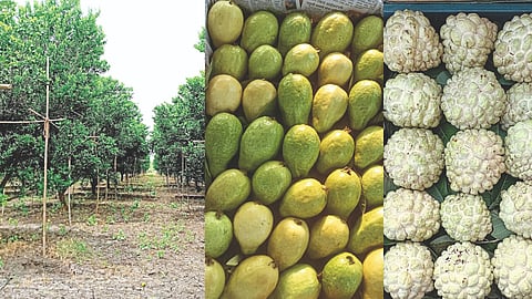 सन २०१४ पासून फळबाग शेती विकसित करण्यास सुरुवात केली. सन २०१४ मध्ये पाच एकरांत बालानगर जातीचे सीताफळ १२ बाय ८ फूट अंतरावर लावले. सन २०१८ मध्ये पुन्हा पाच एकरांत सुपर गोल्डन जातीची लागवड १६ बाय ८ फूट अंतरावर केली. सन २११५ मध्ये पाच एकरांत २० बाय १८ फूट अंतरावर संत्रा लागवड केली असून, एकूण सुमारे ६०० झाडे आहेत. सन २०१७ मध्ये सहा एकरात १६ बाय १४ अंतरावर पेरू असून, एकूण ११५० पर्यंत झाडे आहेत.