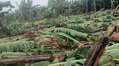 Jalgaon News : खानदेशात पाऊस व पीकहानी सुरूच आहे. वादळी पावसाने यावल तालुक्यात तापीकाठच्या गावांत मोठी हानी झाली असून, केळी भुईसपाट झाली आहे. सुमारे १२०० हेक्टरवरील पिकांना या वादळी पावसाचा फटका बसला आहे. त्यात यावल तालुक्यातील मनवेल, पिळोदा, थोरगव्हाण भागांत केळीची मोठी हानी झाली आहे. हातातोंडाशी आलेला घास हिरावला आहे.