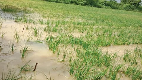 गेल्या आठवडाभरात पावसाने उत्तर सोलापूर तालुक्यात जोरदार हजेरी लावली. या दमदार पावसामुळे तालुक्यातील ओढे, नाले भरून वाहत आहेत. उत्तर सोलापूर तालुक्यातील अनेक गावांमधील शेतांमध्ये पावसाचे पाणी साचल्याने उभ्या पिकांचे मोठे नुकसान होत आहे.