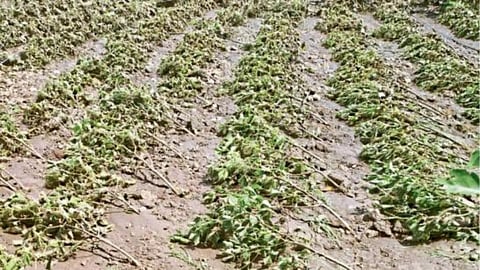 वादळामुळे कपाशीचे पीक मोडून पडले.