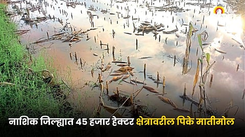 Nashik News : नाशिक जिल्ह्यात ११ ते १३ ऑक्टोबर दरम्यान सलग चार दिवस झालेल्या अतिवृष्टीमुळे अनेक ठिकाणी पिकांची दैना झाली आहे. ज्यामध्ये मका, सोयाबीन, भात, भाजीपाला, कांदा, द्राक्ष, डाळिंब अशा पिकांची ४५ हजार हेक्टर क्षेत्रावरील पिके मातीमोल झाली आहेत. ज्यामध्ये ७३ हजार ३५० शेतकरी बाधित झाले असून ४८९ गावांमध्ये नुकसान झाल्याचा प्राथमिक अहवाल कृषी विभागाने दिला आहे. प्रत्यक्ष पंचनामे झाल्यानंतर या नुकसानीत मोठ्या प्रमाणावर वाढ होणार असल्याची चिन्हे आहेत. कृषी विभागाच्या अहवालात चांदवड, दिंडोरी व सटाणा तालुक्यात द्राक्ष बागांचे ५४२ हेक्टरवर नुकसान आहे.
