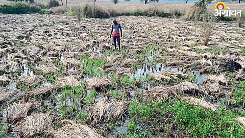 खांब परिसरातील शेतकऱ्यांनी भातकापणी सुरू केली आहे. दरम्यान पाटबंधारे खात्याने अचानकपणे कालव्यात पाणी सोडल्याने शेतात पाणी साचले आहे. त्यामुळे पुन्हा मोठ्या प्रमाणावर खांब, शिरवली, मुठवली, नडवली भागातील धानाचे नुकसान झाले आहे.