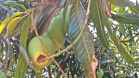 गेल्या काही दिवसांत उष्मा लाट मोठ्या प्रमाणात येत आहे. रत्नागिरीत कातळावर ३८ अंश सेल्सिअसपर्यंत तापमान नोंदवले गेले आहे. त्यामुळे या परिसरातील हापूस आंबा भाजून गळ झाली. तसेच काढणी केलेल्या फळामध्ये साका तयार झाला होता. हे प्रमाण मोठ्या फळामध्ये सर्वाधिक आढळत असल्याचे आंबा बागायतदारांचे मत आहे. उन्हाचा परिणाम होऊ नये यासाठी सूर्याची प्रखरता जाणवणाऱ्या दिशेची फळे लवकर काढली जात आहेत.