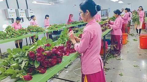 या वर्षीच्या निर्यातीला साधारण ३१ जानेवारी ते १ फेब्रुवारीच्या दरम्यान निर्यातीला सुरुवात झाली. तळेगाव फ्लोरिकल्चर पार्कमधील ७०० एकरांवर पॉलिहाऊसची उभारणी करण्यात आली आहे. यामधील ४० टक्के क्षेत्रावर लाल गुलाब, तर इतर क्षेत्रावर इतर रंगाचे गुलाब, जरबेरा, कार्नेशन, रोपवाटिका आणि भाजीपाल्याचे उत्पादन घेतले जाते.