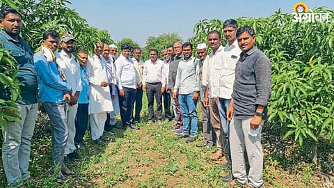नुकताच ॲग्रो इंडिया गट शेती संघाचा २४० वा द्वादश शेतकरी मेळावा प्रकाश कापसे देळेगव्हाण (ता. जाफराबाद) यांच्या शेतात उत्साहात पार पडला. त्या वेळी विलास पंडित, गोविंदराव पंडित तसेच प्रकाश कापसे यांच्या अतिघन लागवड आंबा बागेत शिवार फेरी केल्यानंतर डॉ. कापसे बोलत होते.