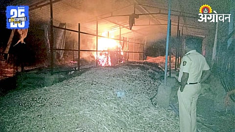 Nashik News : तालुक्यातील दुसंगवाडी शिवारात सोमवारी (ता.२१) रात्री साडेअकरा वाजेच्या सुमारास चाऱ्याच्या गंजला लागलेली आग कांदा साठवलेल्या चाळीपर्यंत पोहोचल्याने या घटनेत जनावरांच्या चाळीस हजार रुपयांच्या चाऱ्यासह सुमारे दीडशे क्विंटल कांद्याचे नुकसान झाले. काही कांदा आगीत जळाला. तर आग विझवण्याच्या प्रयत्नात टाकलेल्या पाण्यामुळे उरलेला सर्व कांदा भिजला. त्यामुळे संबंधित शेतकऱ्याला लाखो रुपयांचा आर्थिक फटका बसला आहे.