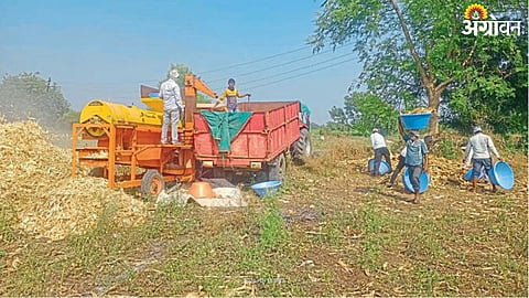 Maize Harvesting : पूर्वी बाजरी, ज्वारी, मका, सोयाबीन आदी पिकांच्या मळणीसाठी ‘खळे’ लावले जात होते. त्यानंतर गावात थ्रेशर आले. आता तर थेट शेतीच्या बांधावरच आधुनिक थ्रेशर यंत्र व हार्वेस्टर जात असल्याने शेतकऱ्यांची मोठी सोय झाली आहे. मेहनतीसह आर्थिक बचतही झाली आहे. आता प्रत्येक गावात दोन-चार ट्रॅक्टरवर थ्रेशर मशिन असल्याने शेतीशिवारात थ्रेशरचा आवाज घुमू लागला आहे.