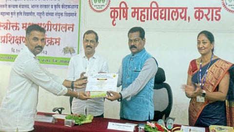 कऱ्हाडचे (जि. सातारा) शासकीय कृषी महाविद्यालय, कृषी सहकार शेतकरी कल्याण विभाग, कृषी व शेतकरी कल्याण मंत्रालय व महात्मा फुले कृषी विद्यापीठ राहुरीच्या कृषी कीटकशास्त्र विभागाच्या वतीने येथील शासकीय कृषी महाविद्यालयात मधमाशी पालनासंदर्भात सात दिवसीय प्रशिक्षण झाले.