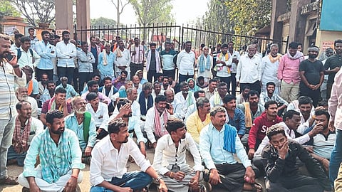प्रवेशद्वार बंद करून आंदोलनाला सुरुवात केली. यामुळे बाहेरच्या शेतकऱ्यांना आत जाता आले नाही. तसेच आतमध्ये किरकोळ बाजाराला गेलेल्या नागरिकांना मनस्ताप झाला. एपीएमसीचे दुसरे प्रवेशद्वारदेखील बंदच होते. प्रवेशद्वार बंद असल्यामुळे एपीएमसी पहिल्या प्रवेशद्वारापासून बॉक्साईट रोड व दुसऱ्या बाजुला कंग्राळी गावापर्यंत रस्त्याच्या दुतर्फा वाहनांच्या रांगा लागल्या होत्या.