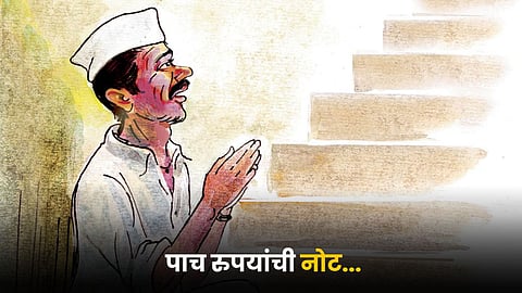 त्यांच्या आभाळाएवढ्या दुःखाने ते बापलेक माझे दुःख नकळत हलके करत गेले. आजही कधी त्या हॉस्पिटलजवळून गेलो तर पांडुरंगाचे अभागी वडील तिथे वावरत असल्याचा भास होतो अन् घामाने मळकटलेली ती पाच रुपयांची नोट डोळ्यापुढे तरळते.