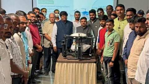 कोपरगाव येथील प्रगतिशील शेतकरी संतोष शिंदे, नेवासा येथील संदीप शेंडे, लक्ष्मण बर्डे यांनी उपस्थित युवा शेतकऱ्यांना कृषी ड्रोन व ड्रोन फवारणी व्यवसायाच्या माध्यमातून उद्योजकता बाबत माहिती दिली.