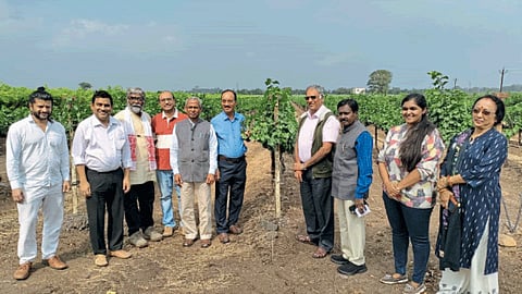 या वेळी समितीचे प्रमुख निवृत्त शास्त्रज्ञ व समितीचे प्रमुख डॉ. पार्थ सारथी, राष्ट्रीय द्राक्ष संशोधन केंद्राचे संचालक डॉ. कौशिक बॅनर्जी, वनस्पती रोगशास्त्रज्ञ डॉ. सुजय साहा, भारतीय कृषी संशोधन परिषदेचे फलोत्पादन विज्ञान विभागाचे माजी अतिरिक्त महासंचालक डॉ. बी. के. पांडे, तमिळनाडू कृषी विद्यापीठाचे अधिष्ठाता डॉ. रजंगम, भारतीय फलोत्पादन संशोधन संस्थेचे प्रमुख शास्त्रज्ञ आणि प्रकल्प समन्वयक (फळे) डॉ. प्रकाश पाटील आदींचा या समितीत समावेश होता. त्यांनी तीनदिवसीय दौऱ्यात शेतकऱ्यांच्या बांधावर भेटी देऊन कामकाज अनुभवले.