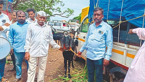 Eid Famous Goat : मुस्लिम धर्मियांचा सण सोमवारी (ता. १७) बकरी ईद असल्यामुळे कोल्हापुरातील वडगावमधील जनावरांच्या बाजारात मोठ्या प्रमाणात बोकड आणि शेळ्यांची मोठी आवक पहायला मिळाली. बाजारात अन्य जनावरांच्या तुलनेत बकऱ्यांचा मोठा बाजार भरला होता. या बाजारात बिटल, शिरुर, कवठेमहांकाळ, आटपाडी, कच्ची, अंडील अशा विविध जातींचे पालवे, बोकड विक्रीसाठी आले होते. याचा व्यापार करण्यासाठी व्यापारी, शेतकरी यांनी गर्दी केली होती.