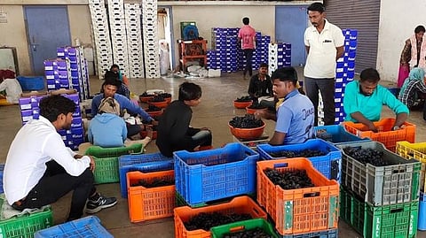 Grapes Production Sangli : सांगली जिल्ह्यातून द्राक्ष निर्यातीसाठी यंदा सर्वाधिक म्हणजे १० हजार १५६ शेतकऱ्यांनी नोंदणी केली आहे. आतापर्यंत आखाती देशात २६ कंटेनरद्वारे ३८९ टन द्राक्ष निर्यात झाली आहेत. फेब्रुवारीच्या सुरुवातीपासून युरोपीय देशात निर्यात सुरू होणार आहे. गतवर्षी ९ हजार ५२४ शेतकऱ्यांनी १७ हजार ३१८ टन निर्यात केली होती. नैसर्गिक आपत्ती, विविध कारणांमुळे द्राक्षबागांमध्ये झालेल्या घटीमुळे यंदा जेमतेम ११ हजार टन निर्यात शक्य होईल, असा अंदाज आहे. यंदा निर्यातदार वाढले तरी निर्यातीत घट येणार आहे.