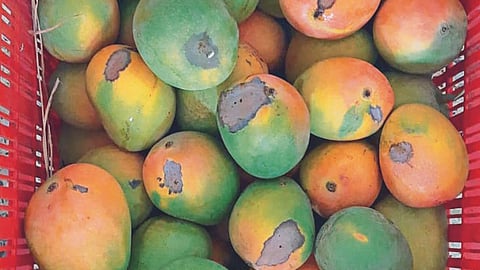 गेले आठवडाभर ही परिस्थिती असल्याचे बागायतदारांकडून सांगण्यात आले. याबाबत बागायतदारांनी अभ्यासकांशी चर्चा केल्यानंतर हा उन्हाच्या तीव्रतेचा परिणाम आहे, असे सांगण्यात आले. तसेच सकाळच्या सत्रात पडणारे दव आंब्यावर राहते. उन्हामुळे ते आंब्याच्या सालीवरच जळून जाते आणि फळावर डाग पडतात. त्यामध्ये साका तयार होतो. झाडाला पाणी देणे हा उपाय असला तरीही एवढ्या मोठ्या बागेला पाणी देणे खर्चीक आहे. त्यामुळे बागायतदारांना राम भरोसे म्हणायची वेळ आली आहे.