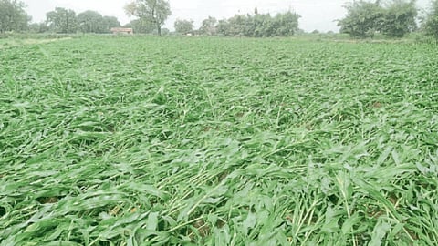 Jalgaon News : खानदेशात रविवार (ता. २६) व सोमवारी (ता. २७) झालेल्या पावसात तूर, कापूस व फळ बागांची मोठी हानी झाली आहे. अनेक गावांत कापूस पीक आडवे झाले असून, शेतकरी चिंतेत आहेत. पंचनामे सुरूच आहेत.