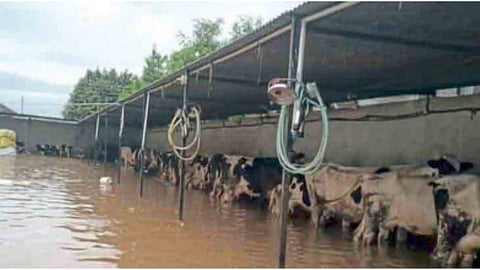 Crop Damage : परभणी ः परभणी व हिंगोली जिल्ह्यात रविवारी (ता. १) ते सोमवारपर्यंत (ता. २) झालेल्या अतिवृष्टीमुळे जमिनी खरडून गेल्या, पिकात पाणी साचल्याने प्राथमिक अंदाजानुसार ५ लाख हेक्टरवरील पिकांचे नुकसान झाले आहे. हिंगोली जिल्ह्यात पुरात वाहून गेलेल्या १ व्यक्तीचा मृत्यू झाला. या दोन जिल्ह्यांतील लहान मोठी मिळून एकूण ५३६ जनावरे दगावली आहेत. पुरामुळे विहिरींमध्ये गाळ जमा झाला आहे. तुषार, ठिबक संच, पीव्हीसी पाइप वाहून गेले. रेशीम कीटकसंगोपनगृहा, सौरपंप, शेती अवजारे पुरामध्ये वाहून गेली. आखाड्यावरील निवारे, गोठ्यांचे देखील मोठे नुकसान झाले.