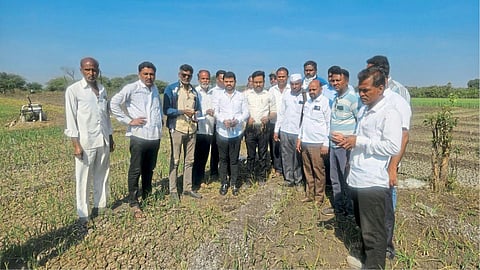 यासंदर्भात रविवारी (ता. २) तालुका कृषी अधिकारी शुभम बेरड, कृषी सहायक सोमवंशी, कृषी अधिकारी किरण मोरे, कंपनीचे प्रतिनिधी, कुणाल दराडे, तालुकाप्रमुख छगन आहेर यांनी पिकांची पाहणी केली.