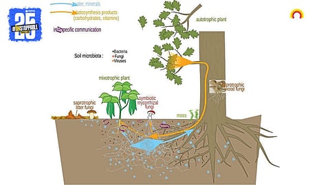 तर झाडे आपल्या मुळाद्वारे काही अन्नघटक जमिनीत सोडून या उपयुक्त बुरशी व सूक्ष्मजीवांचे पालनपोषण करतात. त्यांचे एकमेकांवर अवलंबून असलेले एक जैविक चक्र आहे. झाडे प्रकाश संश्लेषण क्रियेतून अन्न तयार करतात. त्यातील स्वपोषणासाठी व भविष्यासाठी काही भागांची साठवण करतात. त्यानंतर सुमारे ४२ ते ७२% अन्नसाठा मुळांकडे पाठवला जातो. तिथून तो मुळांच्या परिसरात वाढणाऱ्या उपयुक्त सूक्ष्मजीव व बुरशींच्या पालन पोषण वापरला जातो. हे जीवनचक्र जेवढे सुदृढ, तेवढे झाड सुदृढ असते. म्हणूनच झाड सुदृढ झाले की त्याला खतेही अत्यल्पच लागतात. ती कीड-रोगांच्या प्रादुर्भावाला उत्तम प्रतिकार करतात. म्हणूनच कीडनाशकांच्या फवारणीची फारशी गरजच भासणार नाही, अशी स्थिती येते.