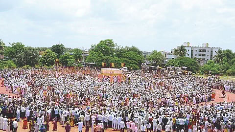 जगद्गुरू संतश्रेष्ठ तुकाराम महाराज पालखी सोहळ्याचे बुधवारी (ता. १०) इंदापूर शहरात मुक्कामासाठी आगमन झाले. दरम्यान सकाळी रयत शिक्षण संस्थेच्या कस्तुरबाई श्रीपती कदम विद्यालयाच्या मैदानावर रिंगण सोहळा डोळ्यात साठवण्यासाठी भाविकांनी एकच गर्दी केली. रांगोळी काढून फुलांचा सडा टाकत. इंदापूरकरांनी वैष्णवांचे स्वागत केले.