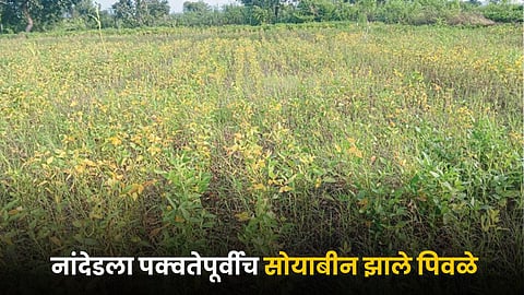 Nanded News : नांदेड जिल्ह्यात यंदा ऑगस्टमधील सततच्या पाऊस आणि सप्टेंबरमध्ये अतिवृष्टी झाली. यासोबतच तापमानात झालेल्या बदलामुळे सोयाबीन पीक पक्वतेपूर्वीच पिवळे पडून पाने गळून पडत आहेत. हा प्रकार जिल्ह्याच्या सर्वच भागात दिसून येत आहे. मागीलवर्षी याच प्रकारे सोयाबीनचे नुकसान झाले होते. सलगच्या संकटामुळे शेतकरी मात्र पुरते धास्तावले आहेत.