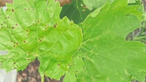 जिवाणूजन्य करपा - सतत पाऊस नसलेल्या किंवा पावसाची उघड झाप असलेल्या परिस्थितीत जिवाणूजन्य करपाचा प्रादुर्भाव वेलीवर दिसून येईल. यावेळी पानांवर पसरट असे काळे ठिपके दिसून येतील. बुरशीजन्य करपा सारखेच नुकसान या रोगामुळे होते. बागेत नवीन फुटी शक्यतो जितक्या लवकर काढता येतील, तितक्या लवकर काढून घ्याव्यात. रोग नियंत्रणासाठी यावेळी आंतरप्रवाही बुरशीनाशकाची फवारणी टाळावी. स्पर्शजन्य बुरशीनाशकांचा वापर करावा. उदा. मॅन्कोझेब, कॉपर, बोर्डो मिश्रण इ. ज्या बागेमध्ये काडी परिपक्वता पूर्ण झाली, व पाऊस नसलेल्या परिस्थिती, ढगाळ वातावरणात भुरीचा रोगाचा प्रादुर्भाव दिसून येईल. पानाच्या वरील बाजूस राखे जमा झाल्याप्रमाणे चित्र दिसेल. यावर नियंत्रणासाठी सल्फरची फवारणी किंवा धुरळणी करून घेता येईल. दाट कॅनॉपी असलेल्या परिस्थितीत धुरळणी, तर मोकळी कॅनोपी असल्यास फवारणी करावी.